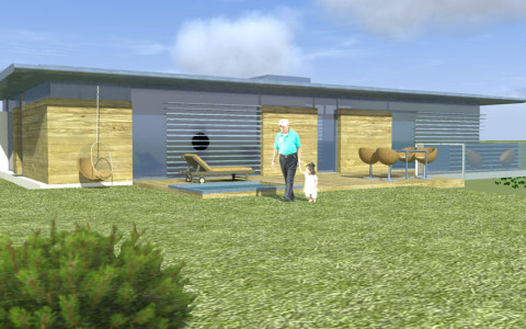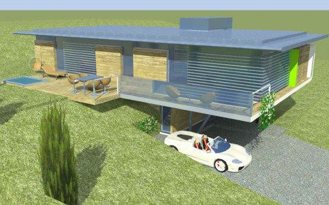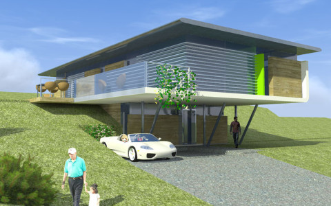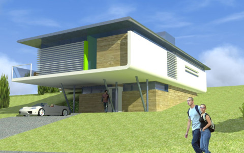 Navrhovaná je originálna architektúra, s určujúcim vplyvom plochej strechy a kolmého prieniku hmôt „kvádrov“ prízemia a poschodia.. Rodinný dom je navrhovaný ako dvojpodlažný objekt s obytnou časťou na druhom nadzemnom podlaží. Z hľadiska dispozično-prevádzkového je diferencovaná nočná a denná zóna . V ich prieniku sú sústredené obslužné a komunikačné funkcie s kumuláciou inštalačných rozvodov, sústredených v technickej miestnosti na prízemí. Hlavné pobytové priestory sú vizuálne prepojené s exterierom zasklenými stenami.